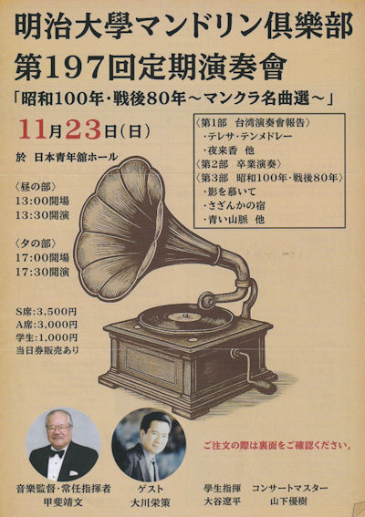■明治大学マンドリンクラブ定期演奏会のお知らせ